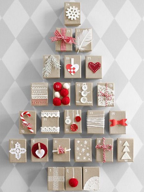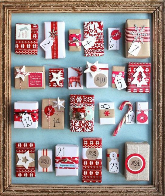 Адвент-календарь в виде небольших подарков. Вы можете запастись небольшими коробочками или сделать их своими руками, красиво оформить их и подписать соответствующими числами. В каждой коробочке можно спрятать подарочек, вкусность или задание.