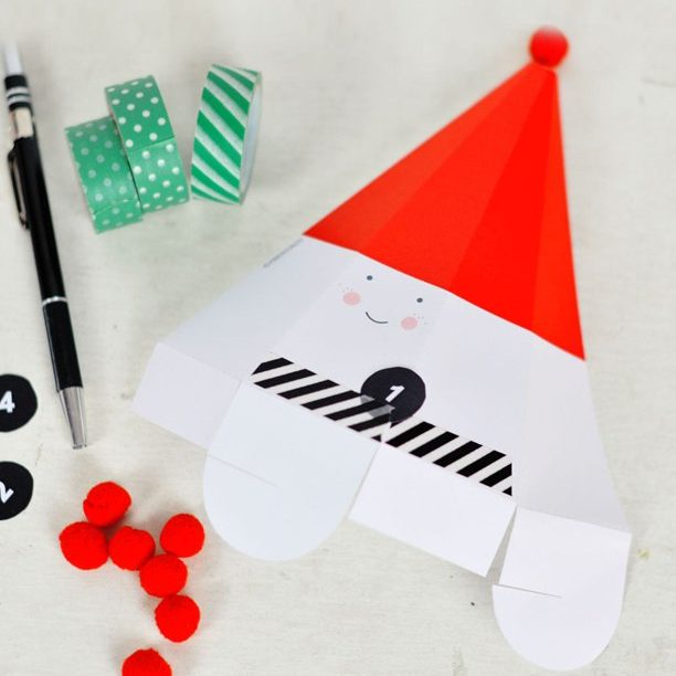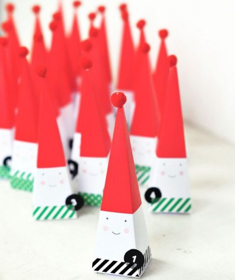 Также вы можете воспользоваться шаблоном ниже и распечатать шаблоны коробочек в виде Санта Клауса/Деда Мороза: