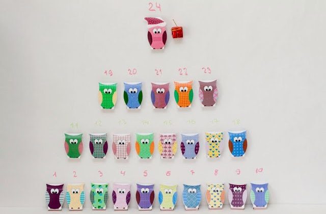 Адвент-календарь «Совушки». Забавный и веселый новогодний календарь в виде совушек. Чтобы сделать его, распечатайте шаблоны, которые вы можете найти чуть ниже под фото, а также подготовьте спичечные коробки, клей и двусторонний скотч.