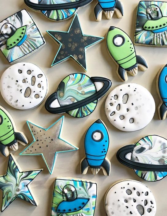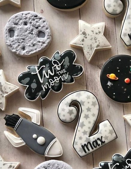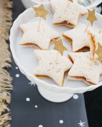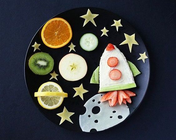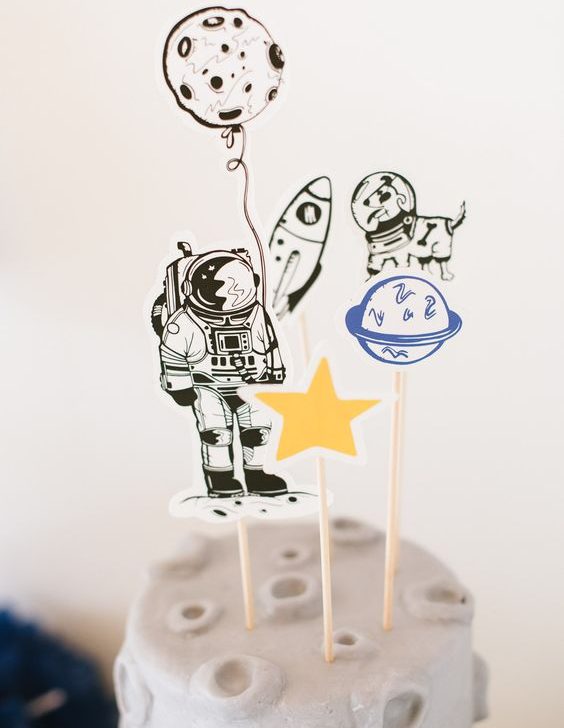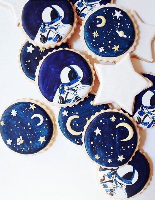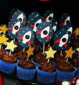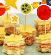 Сырные или фруктовые звездочки легко можно вырезать с помощью формочек для печенья (лучше всего подойдут металлические). А пирожные и кексики отлично будут выглядеть с топперами (это может быть фигурка космонавта или ракета).