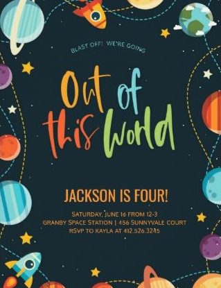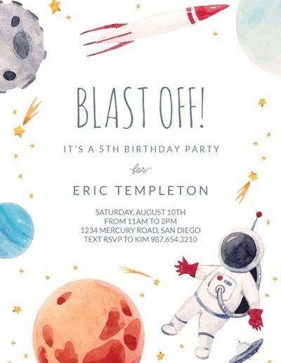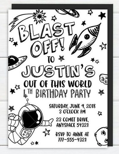 Если вы решили устроить День рождения в космическом стиле, то после того как определитесь с датой, местом и количеством гостей — подготовьте и разошлите гостям приглашения.
