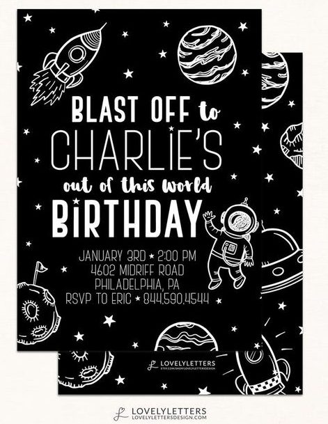 Мы собрали для вас самые интересные идеи для пригласительных на День рождения в стиле Космос.