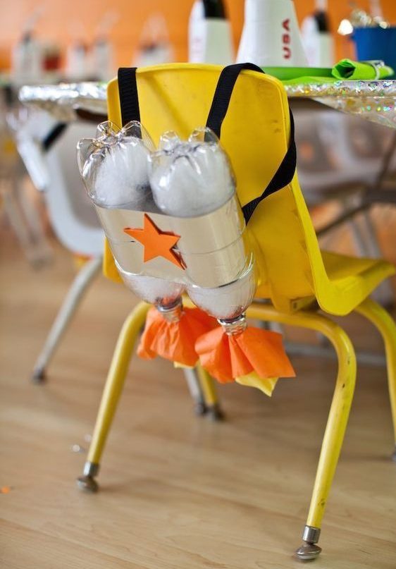 А еще каждому гостю можно подготовить комплект космического снаряжения. Самые маленькие будут весело носиться с ним, а для старших детей можно устроить космический квест.