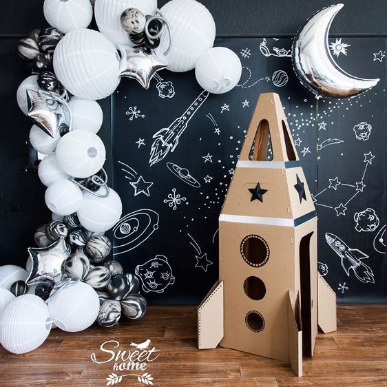 Тематическая фотозона позволит не только сделать яркие и оригинальные фото на память, но и игровой зоной для маленьких гостей праздника. Ракета или космический корабль точно вызовут дикий восторг именинника и его друзей!