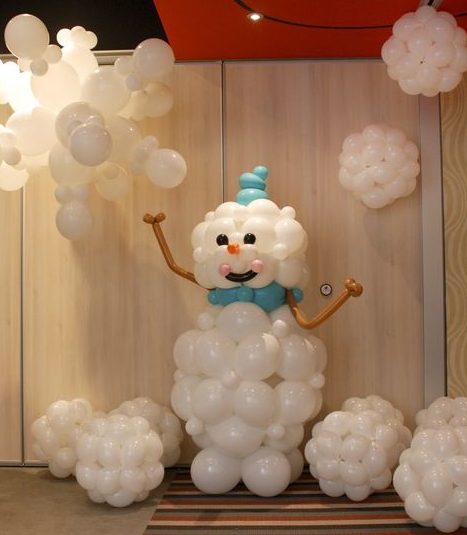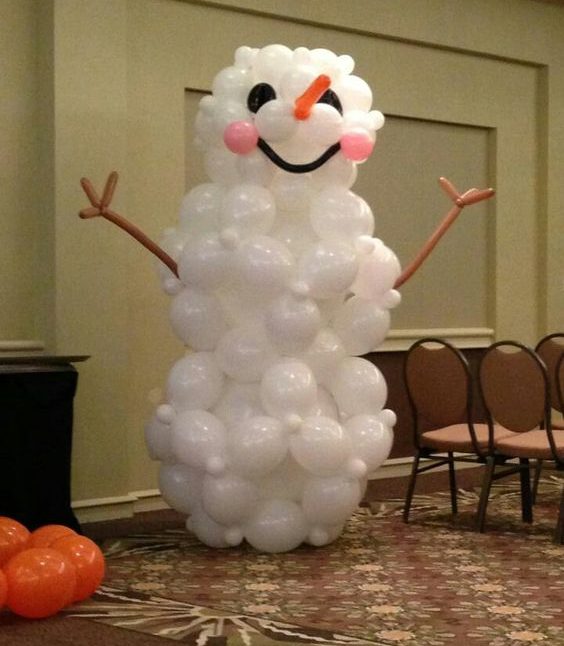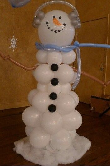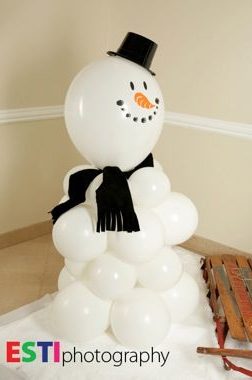 Снеговик. Если зима выдалась не очень снежной, то сделать снеговика можно из воздушных шаров.